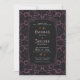These 5" x 7" wedding invitations feature a gothic style with black faux lace on a magenta background and pink roses, with the introduction, "Together with their families, please join," along with placeholders for the wedding couple's first names, date, time, venue, venue address with the message at the bottom, "reception to follow."
