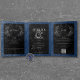 Transport your guests to a world of dark, enchanting elegance with our vintage gothic wedding invitation. The deep, aged blue background sets the stage for a striking contrast, as bold white text emerges. On the cover of this invitation, a three-dimensional gothic border adorned with a regal black raven captures the essence of mystery and romance. Inside, the first thing guests will see is your favourite couple picture above your names, written in a vintage font. The response area is adorned with two intertwining vines of black roses subtly forming a heart, adds a touch of dramatic allure. Unleash the magic and set the tone for an unforgettable wedding day. Created by Simply Farmhouse Press.