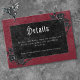 Transport your guests to a world of dark, enchanting elegance with our vintage gothic wedding small details enclosure card. The deep, aged burgundy wine background sets the stage for a striking contrast, as bold white text emerges from intricate black text boxes. Three-dimensional gothic black roses adorn the design, capturing the essence of mystery and romance. Unleash the magic and set the tone for an unforgettable wedding day. Created by Simply Farmhouse Press.