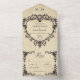 Gothic Black Tan Parchment Filigree Heart Wedding All In One Invitation