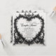 Celebrate your love in the grandeur of Gothic romance with our captivating couples wedding shower luncheon invitation. Embrace the dark allure and timeless elegance with our black three-dimensional filigree heart frame, enveloping bold black text against a pristine white background. This invitation exudes a mysterious charm, with an air of dramatic sophistication. The intricate details of the filigree heart frame add depth and texture, creating a mesmerizing focal point that captures the essence of your unique love story. As a final touch of personalization, the back of the invitation features the same enchanting filigree heart frame behind a coupled pair of ravens, adding a subtle yet meaningful touch to this Gothic masterpiece. Let your invitation set the stage for a celebration that is unforgettable. Created by Simply Farmhouse Press.