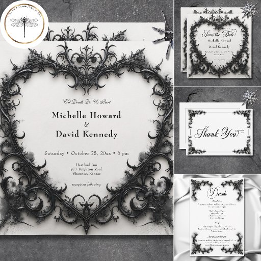 Gothic Black & White Filigree Heart Wedding Invitation