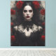 A gothic bride in her black wedding dress surrounded by red roses is ready for her Halloween day wedding. AI generated art