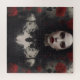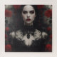 A gothic bride in her black wedding dress surrounded by red roses is ready for her Halloween day wedding. AI generated art