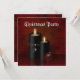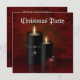 Gothic Christmas illustration featuring black candles with silver skull decoration and a red christmas bauble with black skulls on a grunge red-black background with snowflakes.