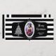 Cet arbre de Noël gothique avec carte Cameo à rayures dispose d'un endroit pour votre photo préférée, un arbre de Noël gris avec crânes contre un arrière - plan à rayures noir et blanc. Customisez avec votre message de vacances, votre nom et votre année.