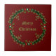 This awesome Christmas tile features a digital art design of a circular gothic Christmas wreath including creeping ivy leaves coloured pale and dark green intertwined around the wreath, poisonous red holly berries and poisonous white mistletoe berries on stems with pretty mistletoe leaves. An alternative wreath for Goths, emos and wiccans. There is custom text so you can personalize this design with your own message.