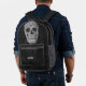 This cool Gothic grunge black and white skull head printed backpack consists of a modern vintage, trendy, scary one-of-a-kind spooky design. Image copyright Marg Seregelyi Photography.