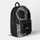 This Gothic cool grunge black and white half skull head printed backpack consists of a modern vintage, trendy, scary one-of-a-kind spooky design. Image copyright Marg Seregelyi Photography.