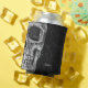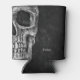 Gothic macabre black and white design. Cool grunge printed texture half skull head beer can cooler. Spooky, modern, unique, creepy, evil, sinister drink holder. Personalized name, Goth script. Trendy, scary Halloween style kitchen decor. Image copyright Marg Seregelyi Photography.