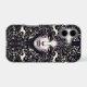 This artistic iPhone case uses a dark, luxurious color palette dominated by deep purples, blacks, and soft gray tones. These colors evoke themes of royalty, mysticism, and the supernatural. High-contrast white highlights define the intricate shapes and add a luminous quality, while subtle gold and brass accents introduce a sense of opulence and sophistication.