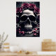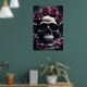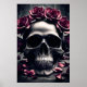 A dark and gothic painting of a human skull surrounded by pale gothic roses and petals, featuring a creepy desaturated gothic atmosphere and otherworldly atmosphere, this gothic poster is perfect for lovers of dark gothic skulls and dark romantic gothic flowers and roses.
