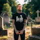 This tee has Death on it in large gothic letters.