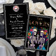 Celebrate your love in unique style with this Day of the Dead inspired skeleton lovers wedding invitation. Featuring two beautifully detailed skeletons adorned with vibrant floral crowns, this gothic yet romantic design is perfect for couples who embrace the unconventional. With a bold black background, colourful flowers, and whimsical skeleton art, it’s ideal for Halloween weddings, gothic ceremonies, or Dia de los Muertos celebrations. Personalize with your names, date, and wedding details for a truly unforgettable invitation.