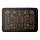 This gothic folk art bath mat features an intricate black-and-gold design inspired by traditional folk motifs, romantic memento mori, and old-world symbolism. Paired skeletons, blooming florals, birds, hearts, and celestial accents are arranged in a balanced, symmetrical pattern that feels intentional, refined, and beautifully eerie.