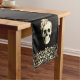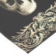 Design features a gothic floral skull with golden ornaments on a black background. Skull is accented with beautiful white roses, adding a touch of dark elegance and sophistication. Whether you're hosting a Halloween party or simply looking to add a touch of gothic glam to your home decor, our Gothic Style Table Runner is the perfect choice.
