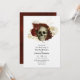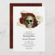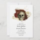 Maroon and gold glitter floral skull wedding invitation with grunge reverse.