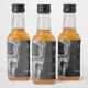 Gothic Halloween wedding theme mini liquor bottle labels. Macabre cool grunge texture black and white printed half skull head. Spooky, creepy, evil, sinister favours. Personalized Goth text, trendy, unique, modern, scary design. Image copyright Marg Seregelyi Photography.