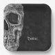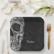 Gothic macabre cool grunge texture black and white printed half skull head square paper plates. Spooky, creepy, evil, sinister. Custom, trendy, unique, modern, scary Halloween party style design. Image copyright Marg Seregelyi Photography.