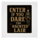 Unleash the spirit of Halloween with this authentic, vintage-inspired "Enter If You Dare The Haunted Lair" sign. Crafted with a deeply distressed, dark-toned background, this sign looks like it was plucked straight from a classic horror movie set or an ancient, forgotten crypt. The bold, antique gold typography stands out with a timeless, spooky charm, perfectly capturing the essence of the season.
