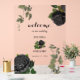 A Gothic Halloween script wedding design with black roses and hanging vines. A white Halloween design that uses black and dark botanical florals along with vintage script calligraphy typography. A stylish Gothic design ideal for Halloween wedding themes. A unique black roses wedding welcome sign design. Matching wedding invitations and other stationery items are also available.
