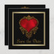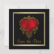 Black and gold with elegant rich red gold trim heart wedding save the date announcement.