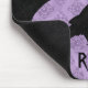 3 raven silhouettes in black on a purple goth damask background and printed on a mouse pad that reads "I love ravens". The wording can be removed or changed easily.