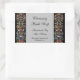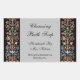 An editable soap, product or craft label with elegant script letters on light grey and vintage gothic art from an antique illuminated manuscript with colourful flowers and scrolling leaves on a black background.