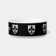 White shields on black with Fleur De Lis symbols surround this cat bowl for your prince or princess cat. Add your royal pet's name to it. If you need to enlarge the text for shorter names, you can do it when you "customize". Click the text, scroll down, click the "+" sign or writer a larger number in the font box.