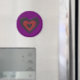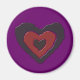This magnet features a beautiful digital image of a gothic black and red heart with ragged edges that shine with an ethereal light and appear to be melting. The background is purple.