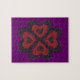 This awesome puzzle features a beautiful digital image of a gothic black and red heart with ragged edges that shine with an ethereal light and appear to be melting. The background is purple.