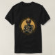Unleash ancient dread with this striking T-shirt featuring a mummy-like skeleton wrapped in aged bandages and crowned with a battle-worn helmet. Centred within an ornate circular frame of mystical symbols and compass motifs, the figure’s glowing red eyes pierce through the darkness. The detailed linework and warm golden tones contrast beautifully against the black tee, making this design a standout piece for fans of gothic horror, mythology, and fantasy fashion.