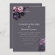 Invite your guests to your celebration with this elegant gothic floral wedding invitation, featuring deep plum and mauve blooms on a moody charcoal-grey background.