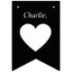 Custom gothic couple proposal at home flags with a name. "Will you marry me?" black bunting flags that you can personalize with a name. Proposal decorations with a heart to surprise your goth girlfriend or boyfriend and ask them to marry you.