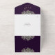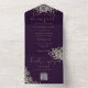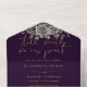 All in one gothic wedding purple and gold invitation featuring roses florals falling across elegant typography. The invitation includes a perforated RSVP card that features your wedding website QR code and details. Designed by Thisisnotme©