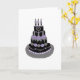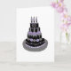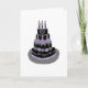 Gothic Purple Birthday Cake greeting card. Cute customizable card has a purple and black gothic birthday cake decorated with roses, hearts, pearls and candles design.