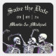 Gothic Purple Dancing Skeletons Save the Date Square Sticker