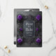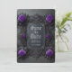 Announce your wedding plans in style with this gothic themed save the date flat card featuring purple roses on a fancy grey frame and your names, wedding date and photo on the back to personalize. Designed by Susan Coffey. Images generated with AI.