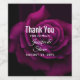 Wedding thank you bottle labels with a close-up image of a gothic looking purple magenta rose. A dark and mysterious style.