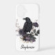 Set the tone for a mysterious dark academia vibe with this personalized phone case. This moody design features a detailed black raven perched among vintage-style purple roses and botanical sprigs rendered in a muted plum and charcoal palette. It is the perfect way to elevate a daily accessory or a thoughtful gift for an edgy teen girl.