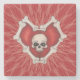 This stone coaster for your drinks is deep red with a spiral line pattern and a Gothic red heart bordered with white bones with a white skull in the centre.