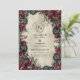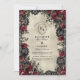 A dramatic and romantic wedding design featuring lush vintage red roses, delicate black lace accents, and a timeless antique parchment background. Perfect for couples seeking a passionate, gothic-inspired aesthetic for their special day.