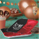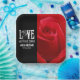 Celebrate your Gothic-themed special day with these striking paper plates, which feature the sappy, pun-filled sentiment, "Love at First Bite" in Goth-inspired lettering (and the outline of a rose, standing in for the letter 'O') and a close-cropped shot of a red rose. Customize with newlyweds' names and wedding date.