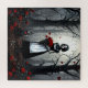 +AI ART+ Gothic robot girl with red flowers and her glitched kitty standing in a forest. Are you her true love? She's waiting for you.