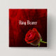 Black and red Gothic-look background and a single red rose Mother of the Bride button.