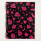 Romance takes flight with this gothic pattern of vivid pink roses, bats, and hearts on a starry black sky