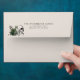 This elegant ivory & sage green gothic Irish envelope has a sage green exterior with customizable Family Name and Address. The inside features a pattern with hand-drawn skulls adorned with green roses, shamrocks, clovers, crows and leaves, all against an elegant white background. Simply click on "Personalize this Template" to insert your own information.