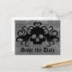 Cute gothic save the date post card with a black vampire skull with fangs with a touch of girly swirls and a heart on top against a grey grungy back ground. Perfect for your theme wedding. If you want to add more text, click on "customize it" and "add text". If you want to change font, font size or colour, or move font around, click on "customize it" and then click the text line that you want to change to open up options. See matching items below.