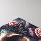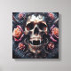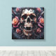 An intricately detailed depiction of a sinister skull surrounded by vibrant roses, adorned with gothic embellishments, blending dark symbolism and beauty in an artistic and surreal representation..