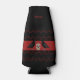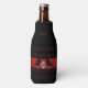 This awesome bottle cooler features a graphic image of a skull with red eyes and yellow teeth covered in cracks. The creepy skull has a large raven standing either side of it like a guardian. The ravens are black with grey legs and claws. They also have beady black eyes.